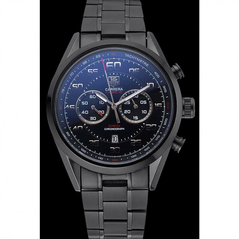 Tag Heuer Carrera Calibre suizo 5 Dial Negro Caja de acero inoxidable y pulsera