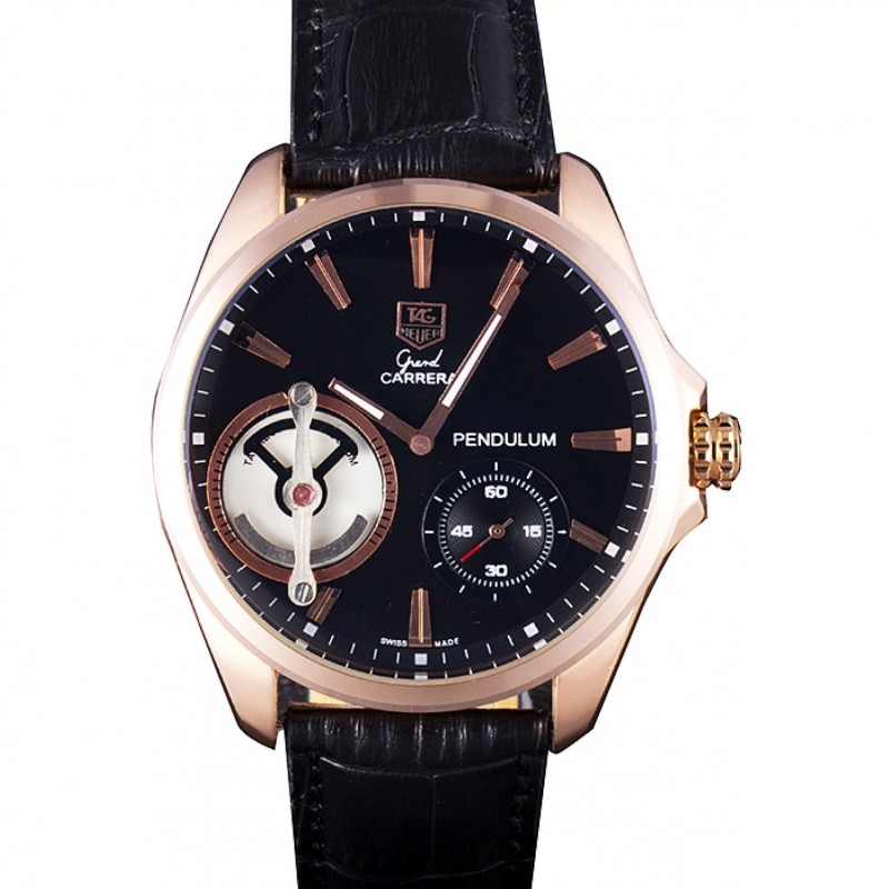 Alta calidad Réplicas Relojes Tag Heuer Carrera Caja Oro Rosa esfera blanca Brown correa de cuero 98245