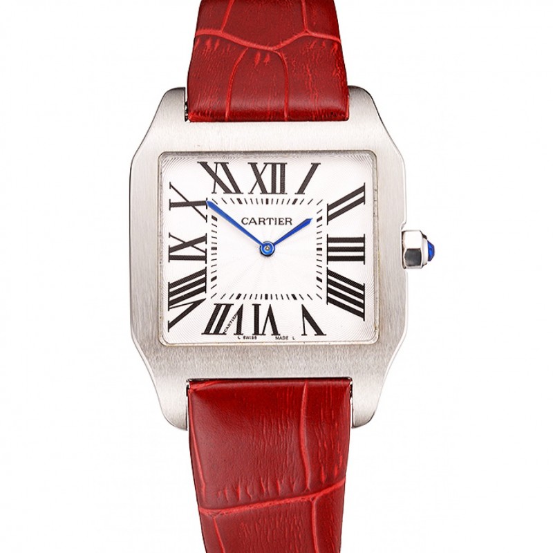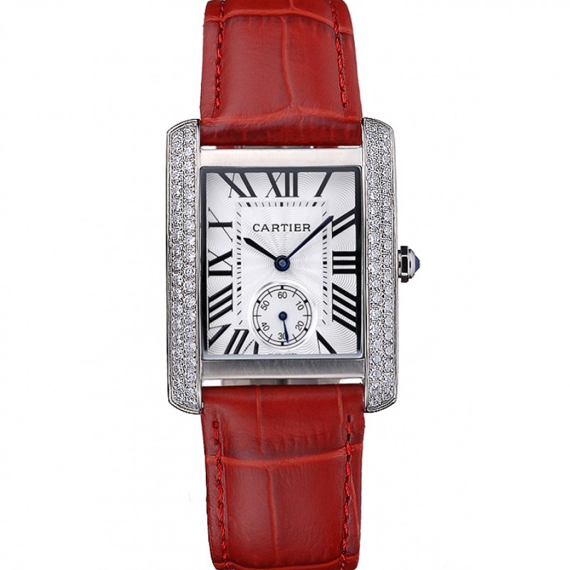 Lujo Cartier Tank MC diamante del acero inoxidable Caso esfera blanca correa de cuero rojo 622173