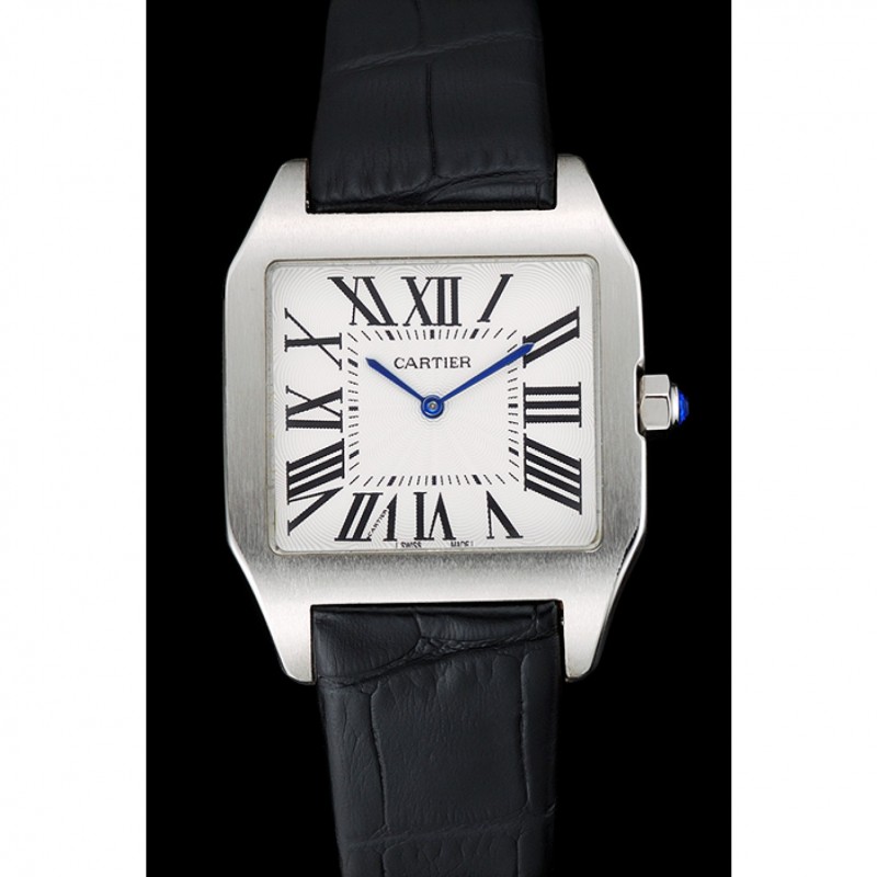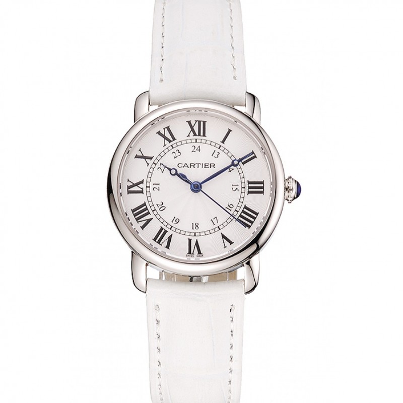 Barato Réplicas Relojes Cartier Ronde Blanco Dial correa de cuero caja de acero inoxidable blanca