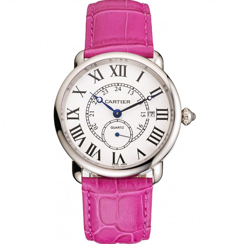 Cartier Ronde Louis Cartier Blanco Dial correa de cuero caja de acero inoxidable fucsia