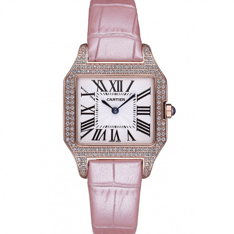 Cartier Santos 100 Diamond Bisel De Oro Rosa 621915