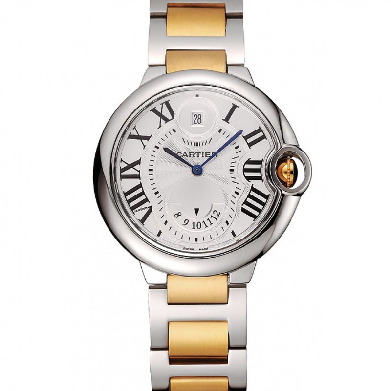 Suizo Cartier Ballon Bleu Dos Zona horaria Blanco Dial de plata del caso del oro y de plata de la pulsera 1453877