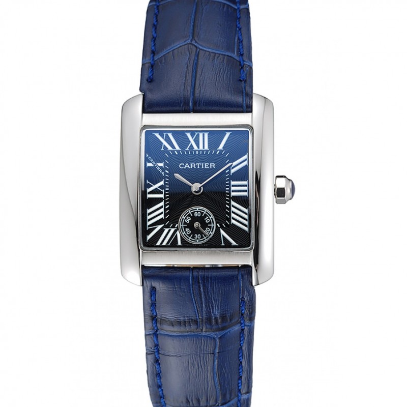 Gama alta Réplicas Relojes Caso Cartier Tank MC azul de acero inoxidable Dial correa de cuero azul 622178