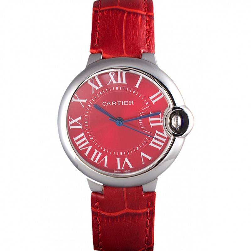 Cartier Ballon Bleu de plata Bisel Con Red Dial y Banda 621.556 cuero rojo