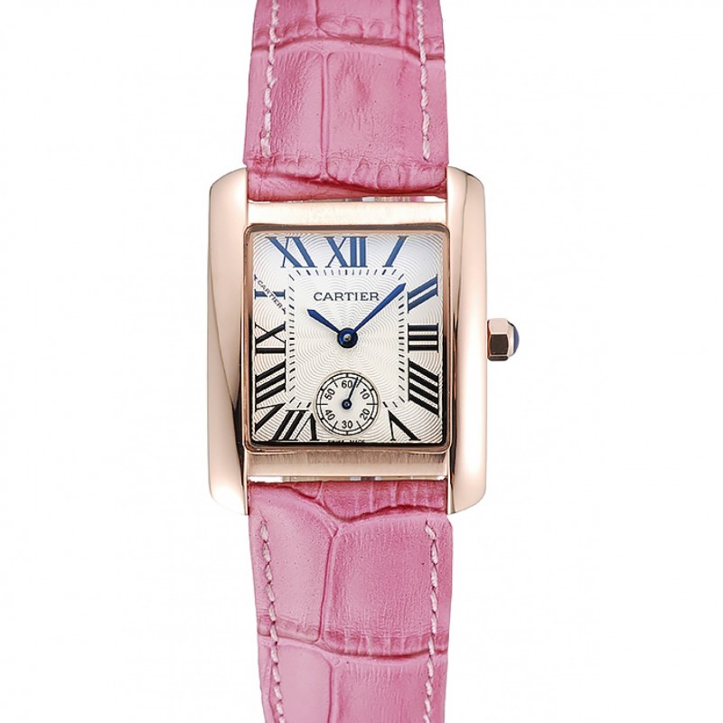 Lujo Réplicas Relojes Cartier Tank MC Caja Oro esfera blanca correa de cuero rosa 622176