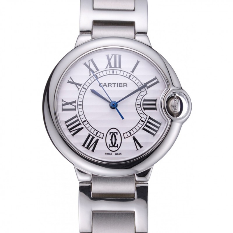 Suizo Cartier Ballon Bleu de Cartier Blanco Dial pulsera de los números romanos del acero inoxidable 622555
