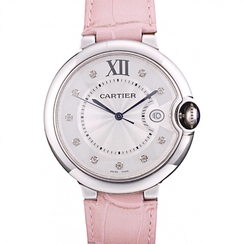 Cartier Ballon Bleu 42mm esfera blanca pulsera de cuero de acero inoxidable caso rosado