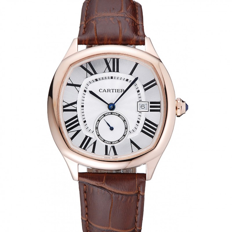 Barato Cartier Drive De Cartier Blanco Dial Caja Oro Brown pulsera de cuero 1454213