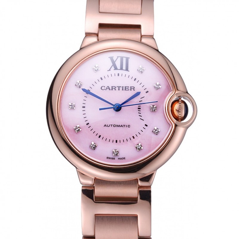 Mejor Suizo Cartier Ballon Bleu de Cartier diamante rosa esfera de oro pulsera 622556