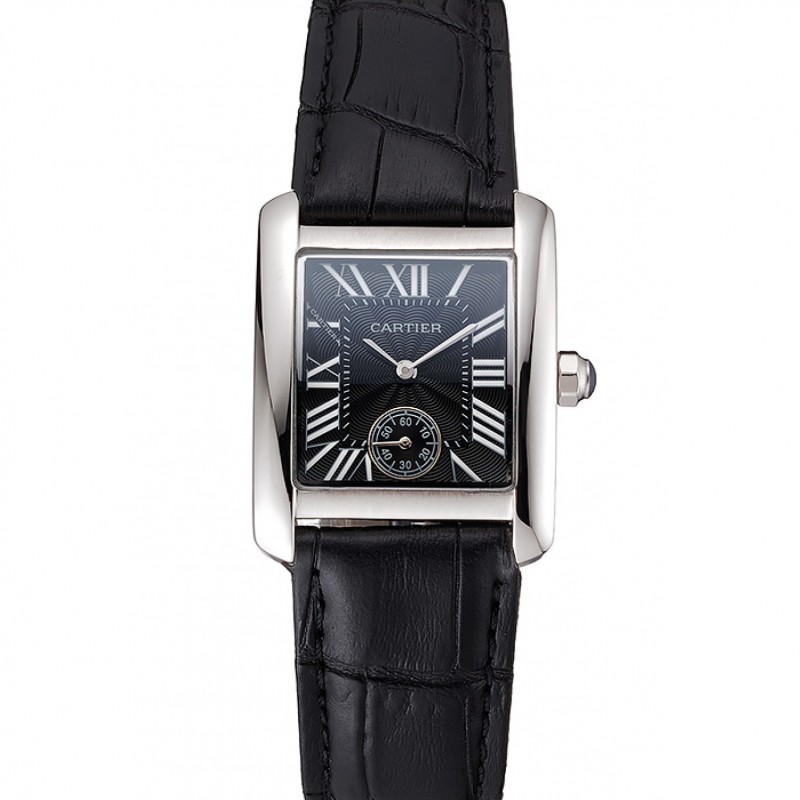 SS Cartier Tank MC caja de acero inoxidable Negro Dial correa de cuero Negro 622174