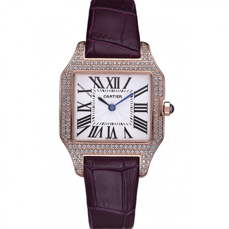 Gama alta Cartier Santos 100 Diamond Bisel De Oro Rosa 621913
