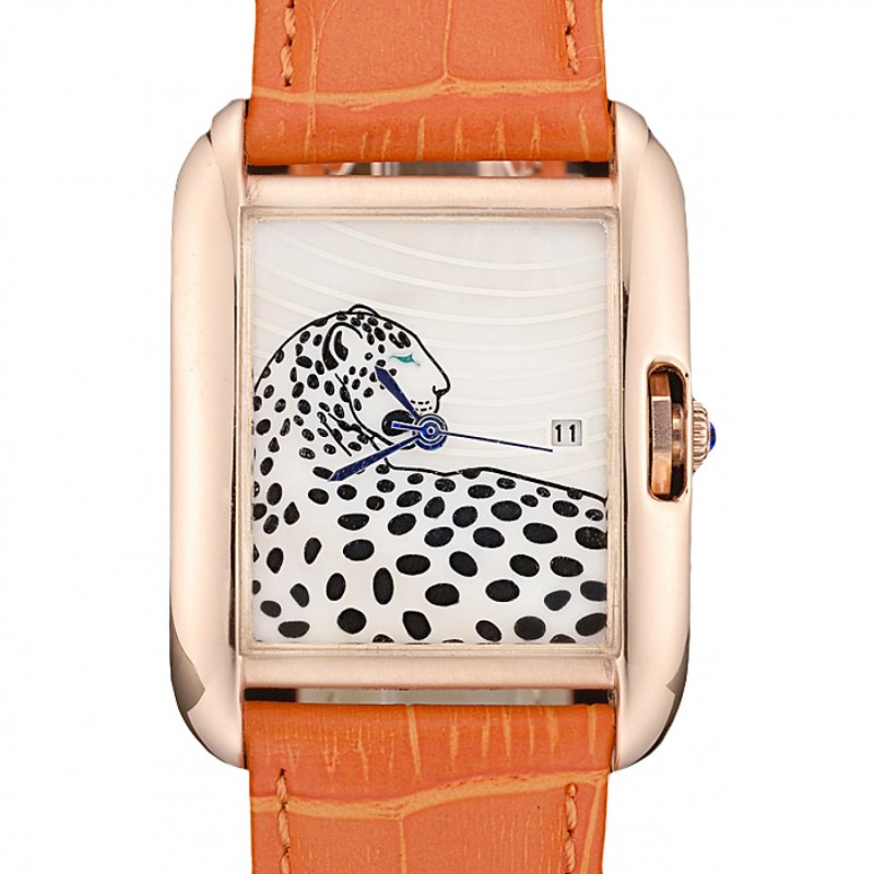 Cartier Tank Inglesa Tigre Blanco Dial pulsera de cuero de la caja del oro Naranja