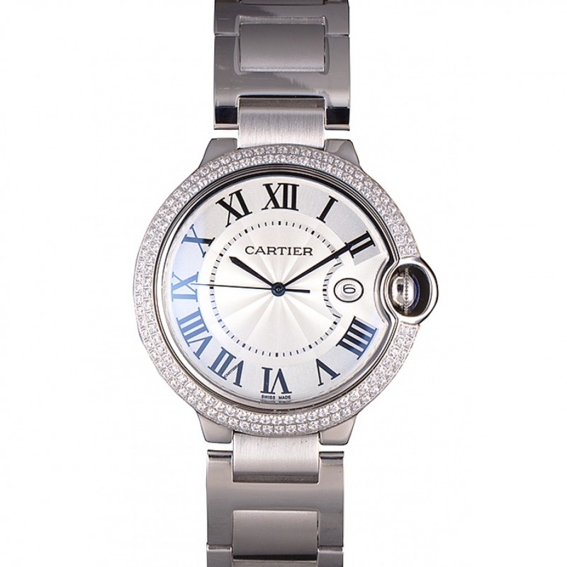 Cartier Ballon Bleu 44mm reloj de diamantes blancos caja de acero inoxidable y pulsera