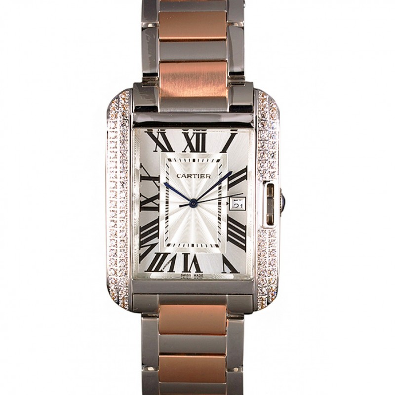 Cartier Tank Anglaise diamantes 36mm línea de plata en caja de acero pulsera de dos tonos