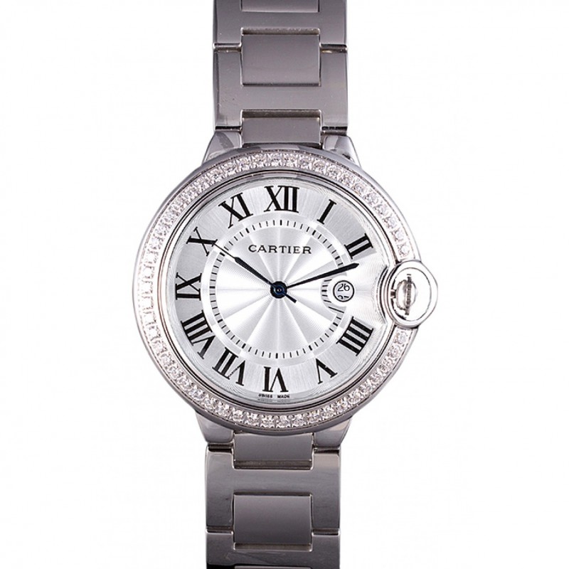 Cartier Ballon Bleu de 42 mm reloj de diamantes blancos caja de acero inoxidable y pulsera