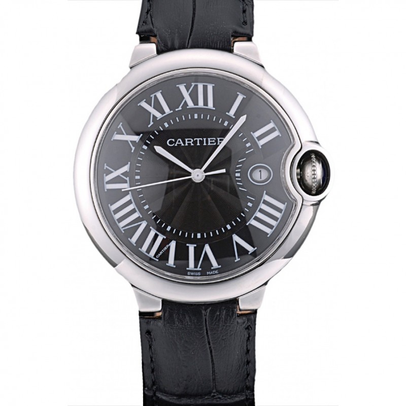 AAA Réplicas Relojes Cartier Ballon Bleu 42mm Dial Negro Pulsera de cuero caja de acero inoxidable Negro
