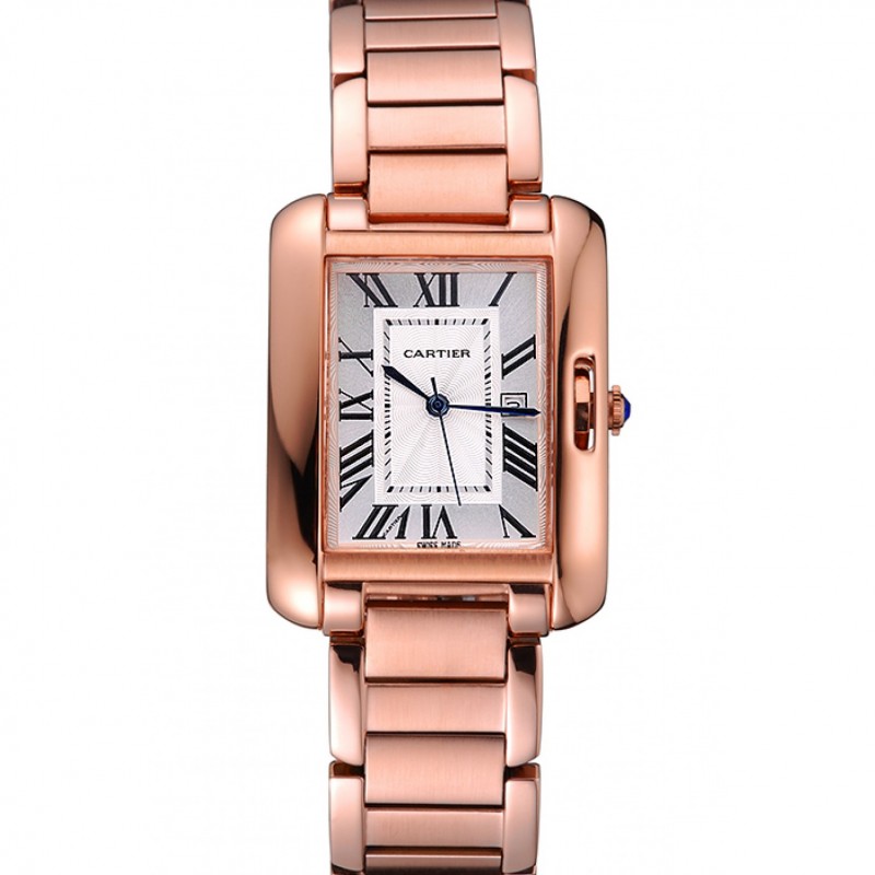 Cartier Tank Inglesa 30mm esfera blanca Caja de oro rosa y pulsera