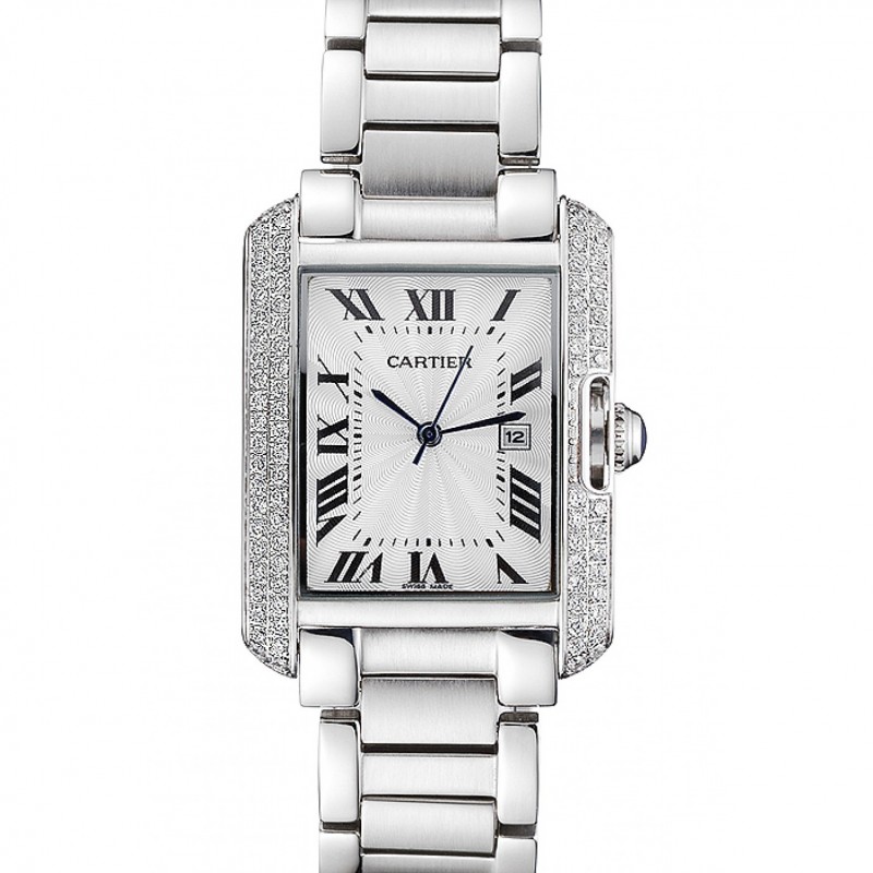 Cartier Tank Inglesa 30mm reloj de diamantes blancos caja de acero pulsera de acero inoxidable