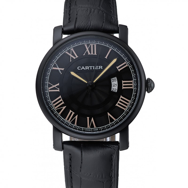 Cartier Rotonde Negro Dial Caso Negro Negro Pulsera de cuero 1454218