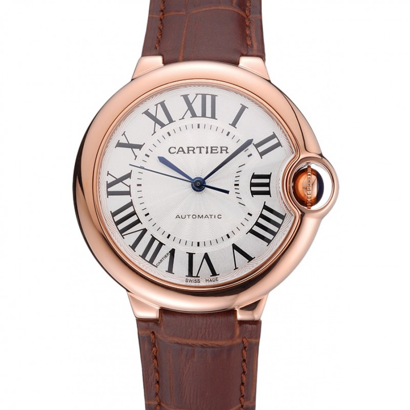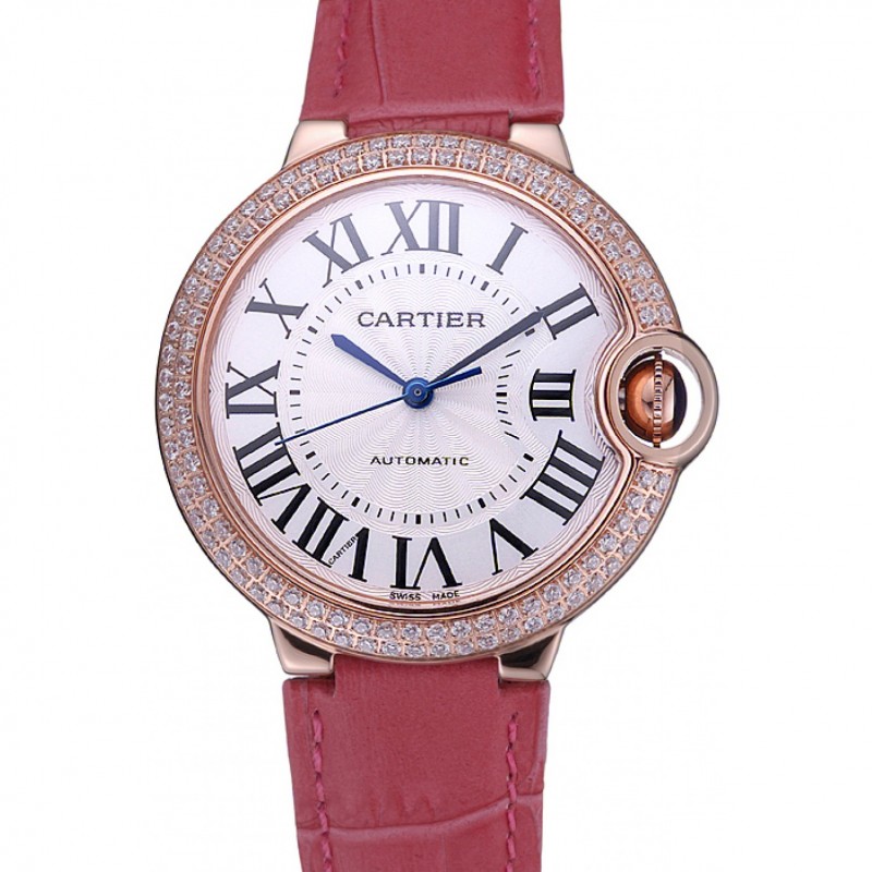 Cartier Ballon Bleu 42mm esfera blanca pulsera de cuero de acero inoxidable caso rosado