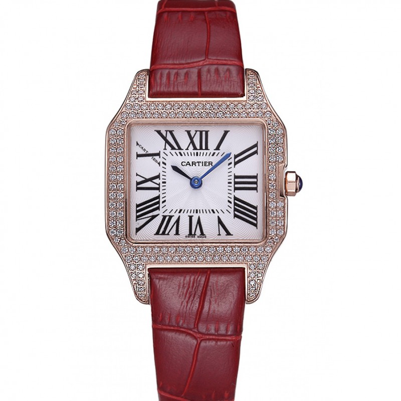 Lujo Réplicas Relojes Cartier Santos 100 Diamond Bisel De Oro Rosa 621917