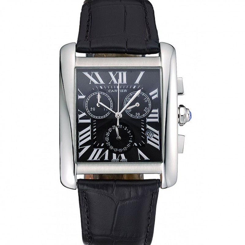 Cartier Tank MC Negro Dial caja de acero inoxidable pulsera de cuero Negro 622690