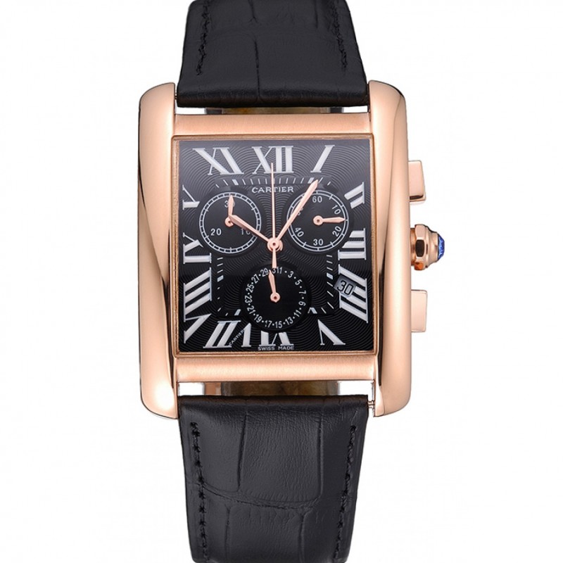 Cartier Tank MC Negro Dial Caso Negro Oro Pulsera de cuero 622694