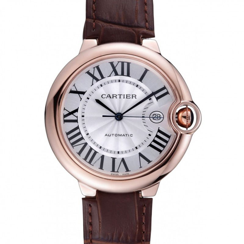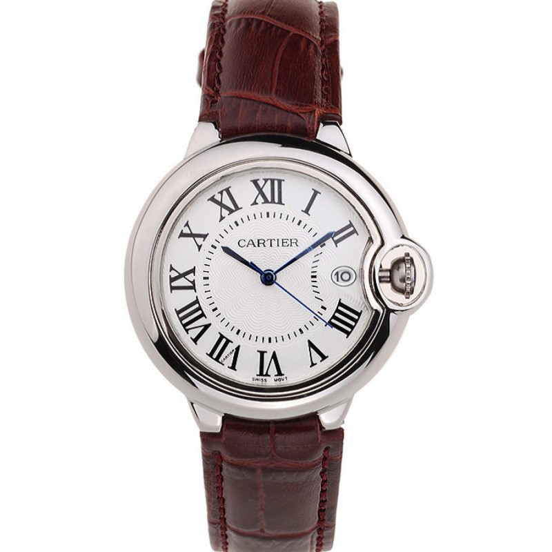 Cartier Ballon Bleu 42mm esfera blanca pulsera de cuero caja de acero inoxidable de Brown