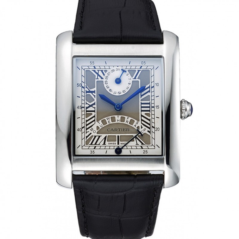 Cartier Tank Esfera Blanca, caja de acero inoxidable Negro correa de cuero 622761