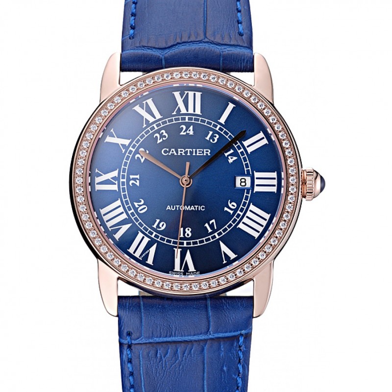 Suizo Cartier Ronde Solo Oro caja del diamante línea azul en números romanos 622208