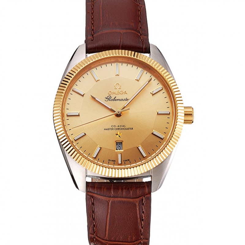 Lujo Omega Globemaster Oro Dial y correa de cuero del bisel de acero inoxidable Caso Brown