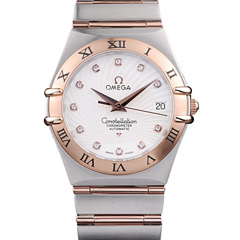 Omega Constellation de oro rosa diamante del bisel de dos bandas de tono 621487