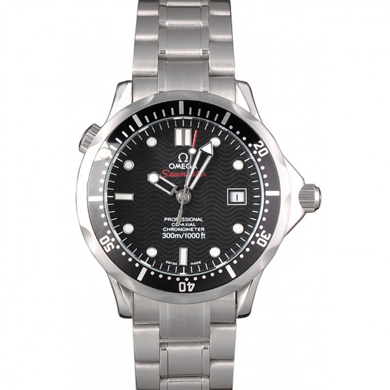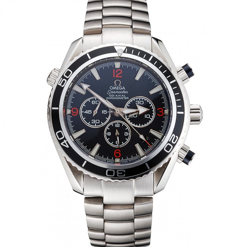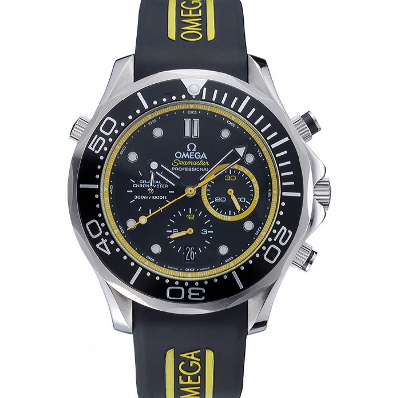 Suiza Omega Seamaster Cronógrafo Negro Dial Negro Bisel Caja de acero inoxidable y pulsera