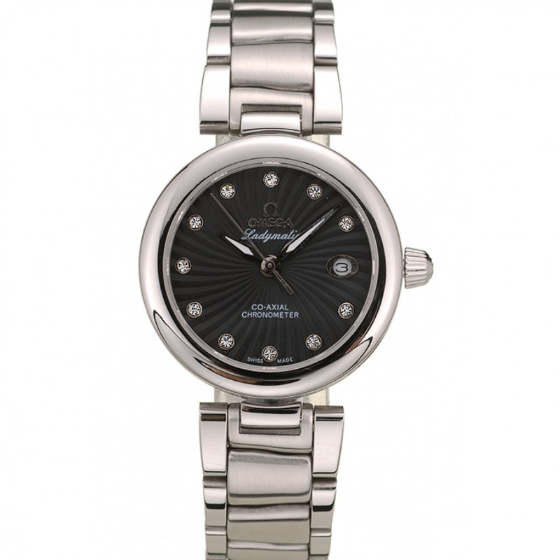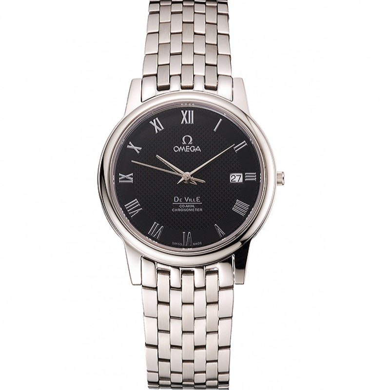 Omega DeVille pulsera de acero inoxidable Dial Negro 621685