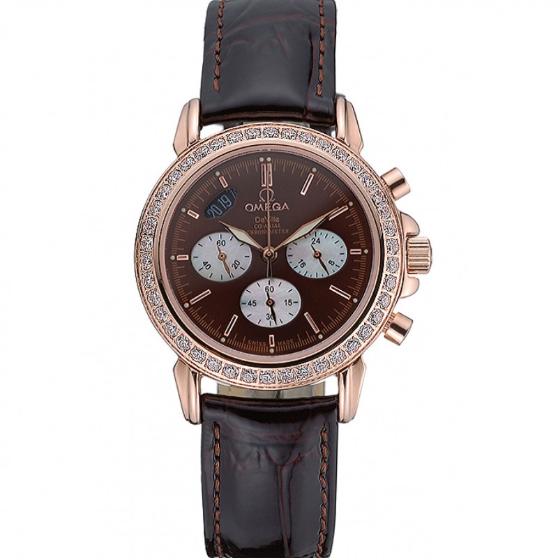 Omega De Ville cronógrafo Dial Brown caja del diamante de oro pulsera de cuero marrón 622457