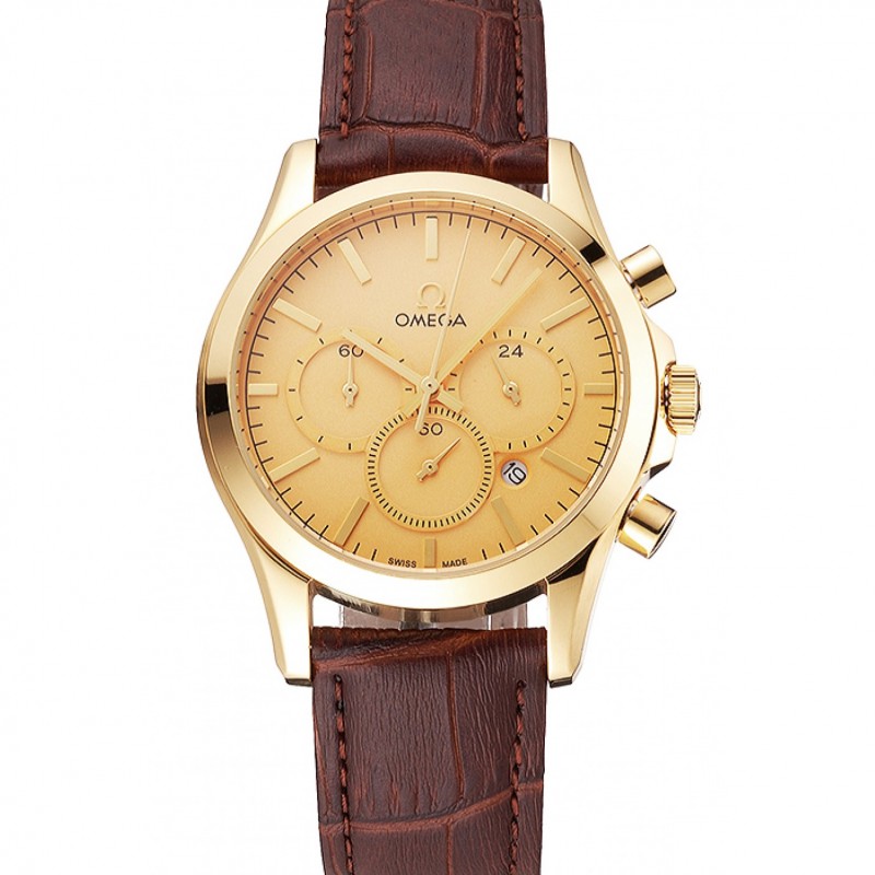 Omega cronógrafo de oro Dial correa de cuero de la caja del oro de Brown