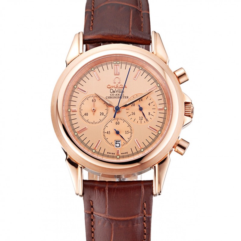 Alta calidad Réplicas Relojes Correa de cuero Omega DeVille suizo de oro rosa Bisel Brown 7616
