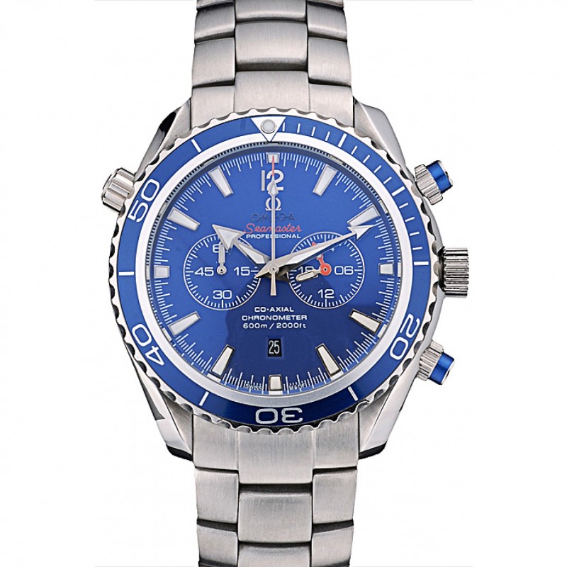 Barato Omega Seamaster Planet Ocean Blue Bisel Dial Azul correa de acero inoxidable 80239