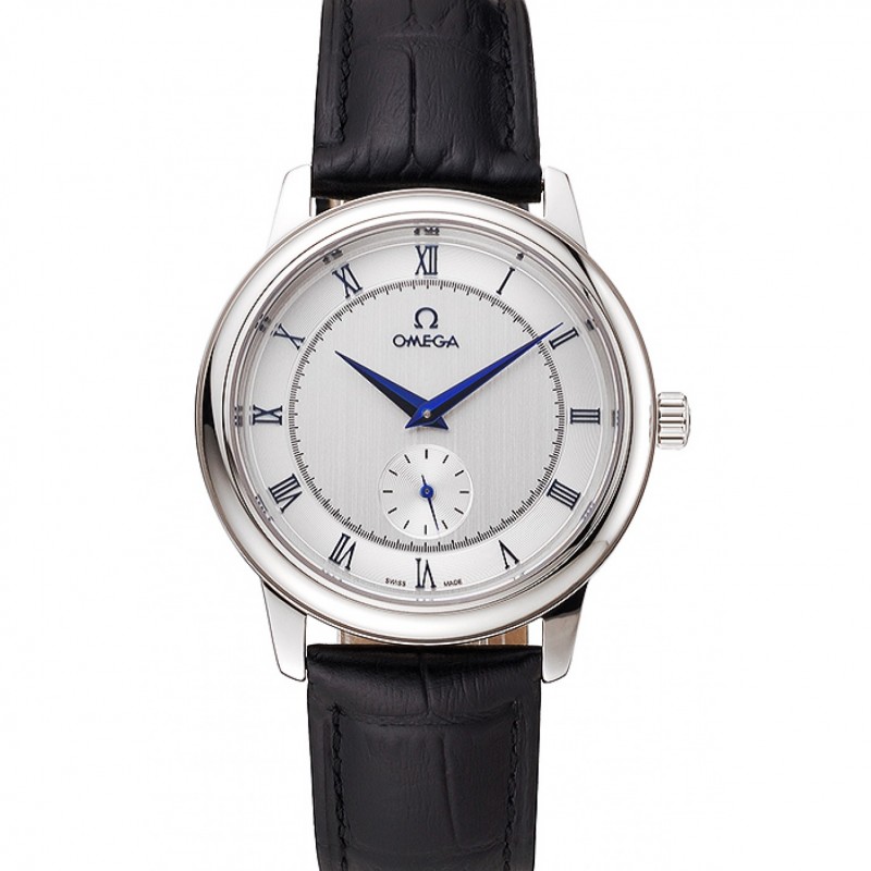 Omega De Ville Prestige pequeños segundos Silver Dial correa de cuero caja de acero inoxidable Negro