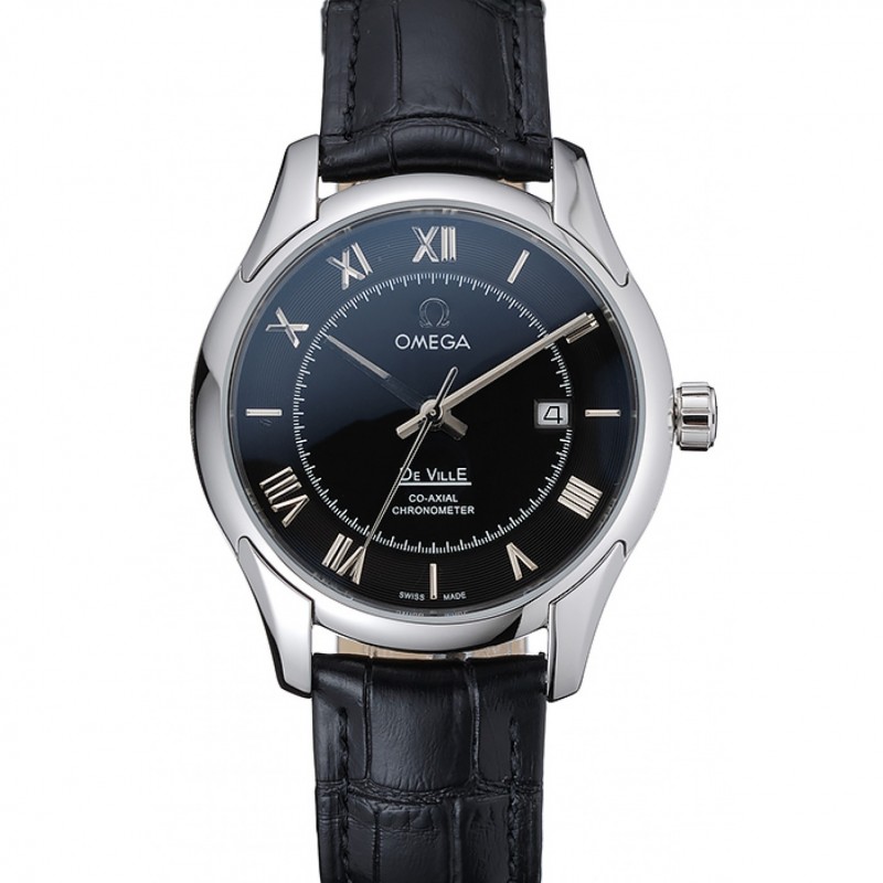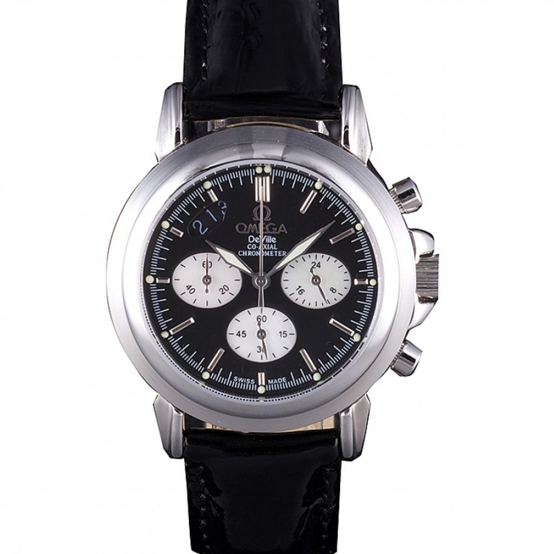 Omega DeVille Negro Dial caja de acero inoxidable Negro correa de cuero 622829