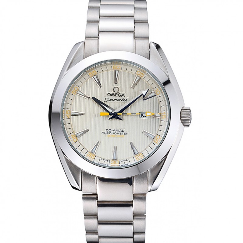AAA Réplicas Relojes Omega Seamaster Aqua Terra Marfil Dial Negro y segundos amarillas mano de la pulsera de acero inoxidable 622525