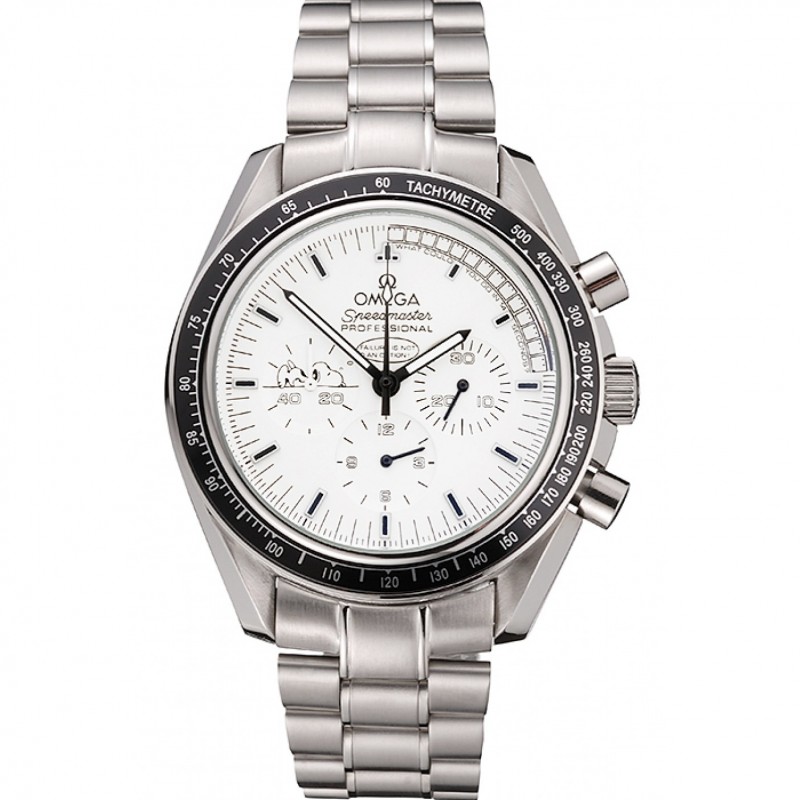 Alta calidad Omega Speedmaster Apolo 13 de plata Snoopy Premio Esfera Blanca, caja de acero inoxidable y pulsera