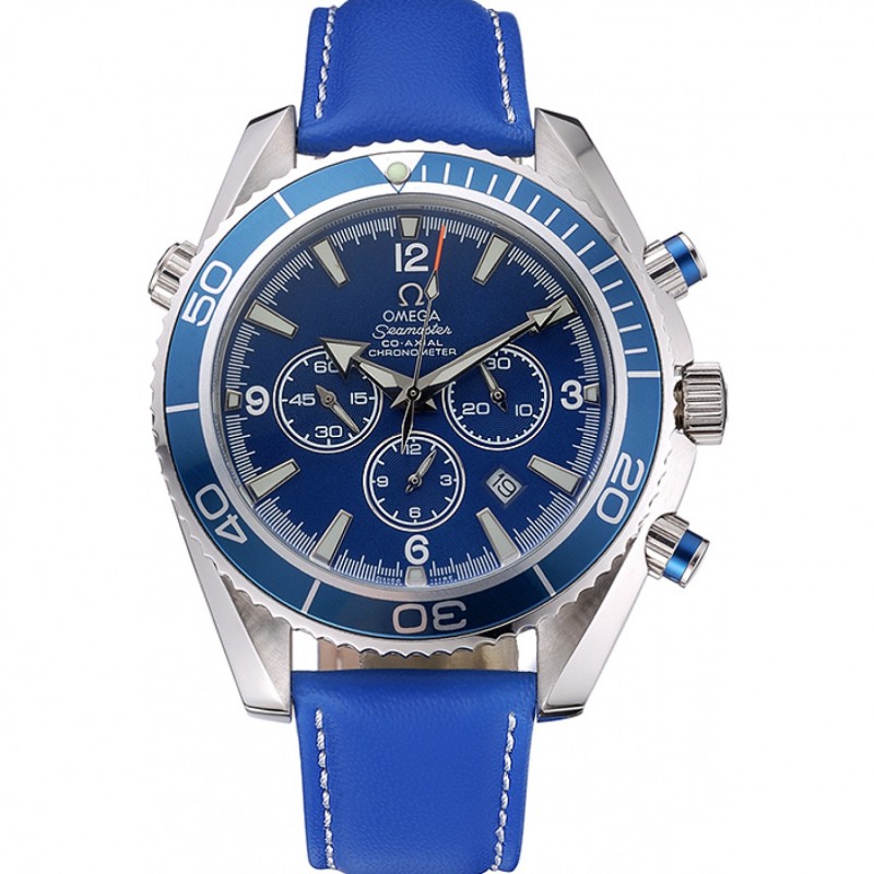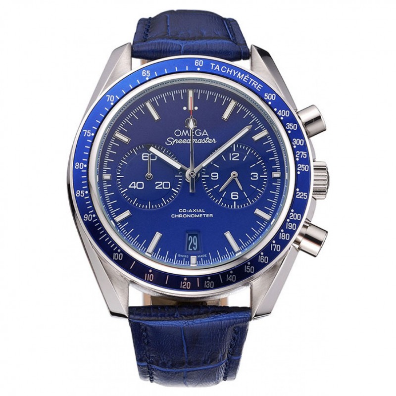 Lujo Omega Speedmaster Azul Dial correa de cuero de la caja de acero inoxidable azul 622808