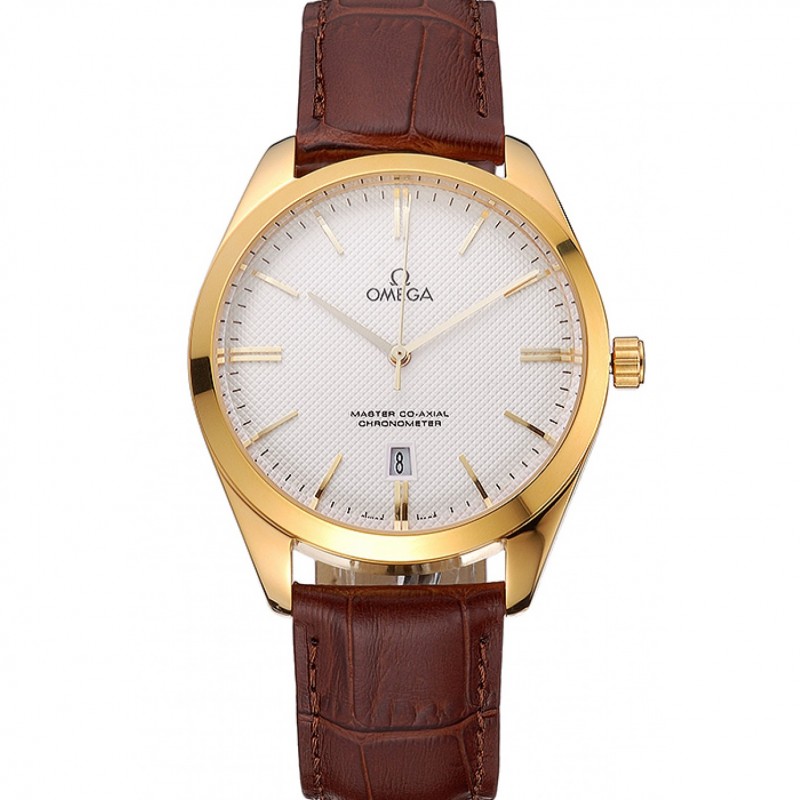 Omega Tresor Maestro Co-Axial Blanco Dial correa de cuero de la caja del oro de Brown