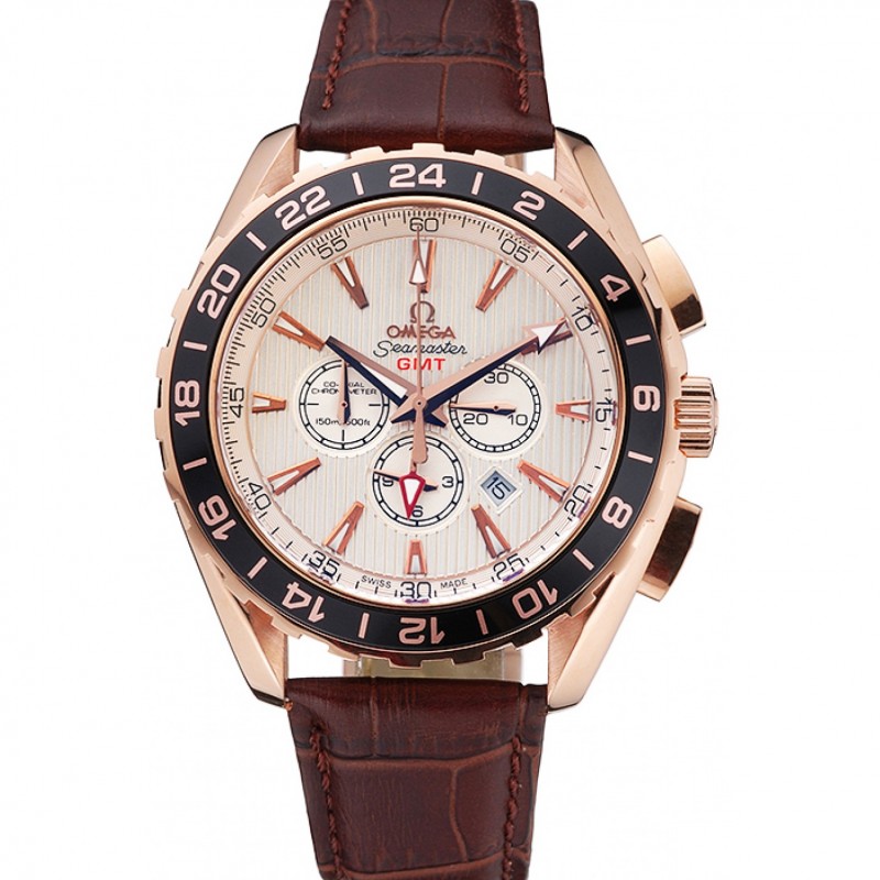 Alta calidad Réplicas Relojes Omega Seamaster Aqua Terra Chrono GMT Marfil Dial de cuero marrón pulsera 622534