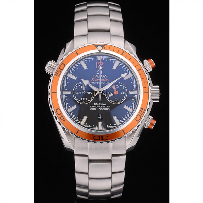 Omega Seamaster Planet Ocean Naranja Bisel Negro Dial correa de acero inoxidable 80241