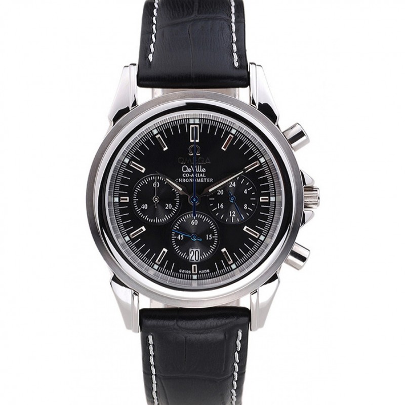 Omega Tresor Maestro Co-Axial Negro Dial correa de cuero caja de acero inoxidable Negro