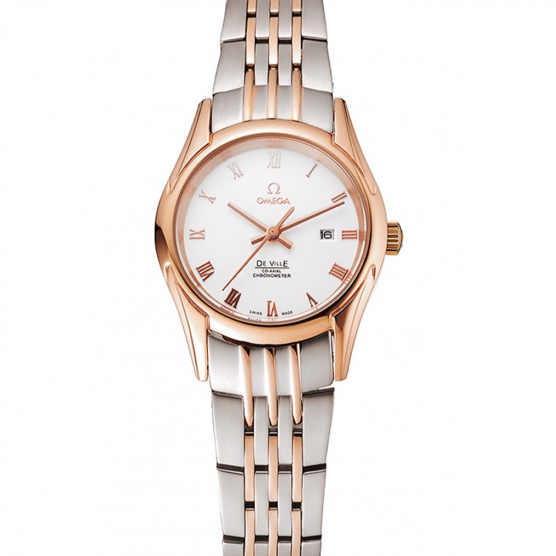 Omega De Ville Señoras Esfera Blanca Caja de oro rosa brazalete de dos tonos 1453782