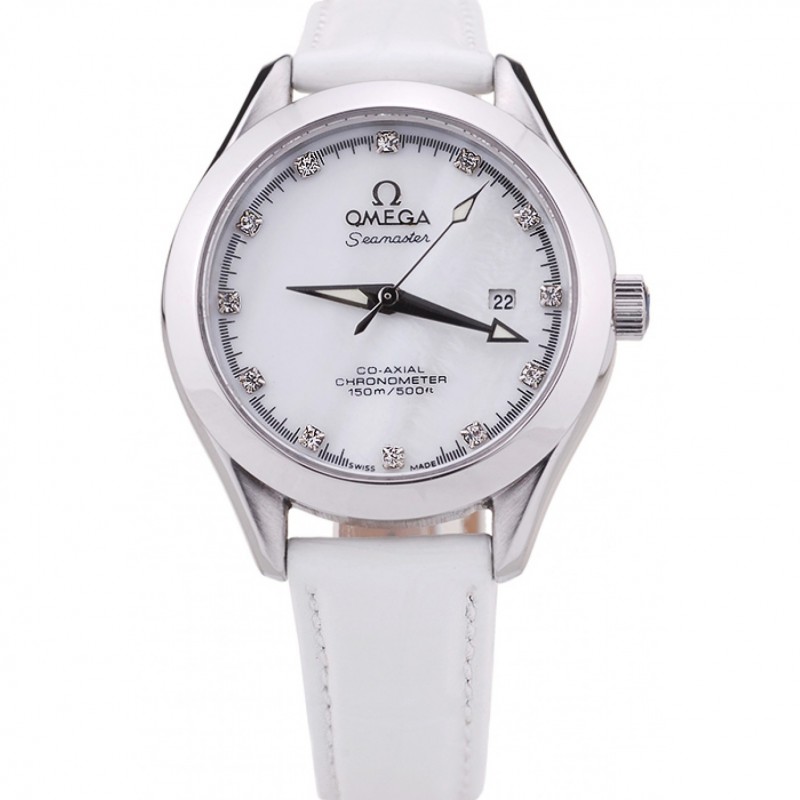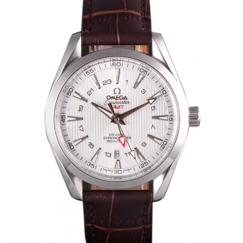 AAA Omega Seamaster de plata del bisel con esfera blanca y marrón banda de cuero 621573